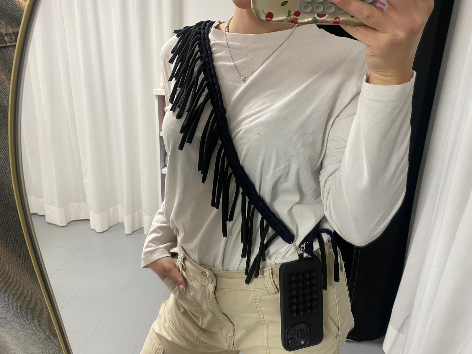Realizzato in crochet, può essere combinato con più colori in versione bicolor, personalizzato con ciondoli e charm e aggiungere frange colorate.