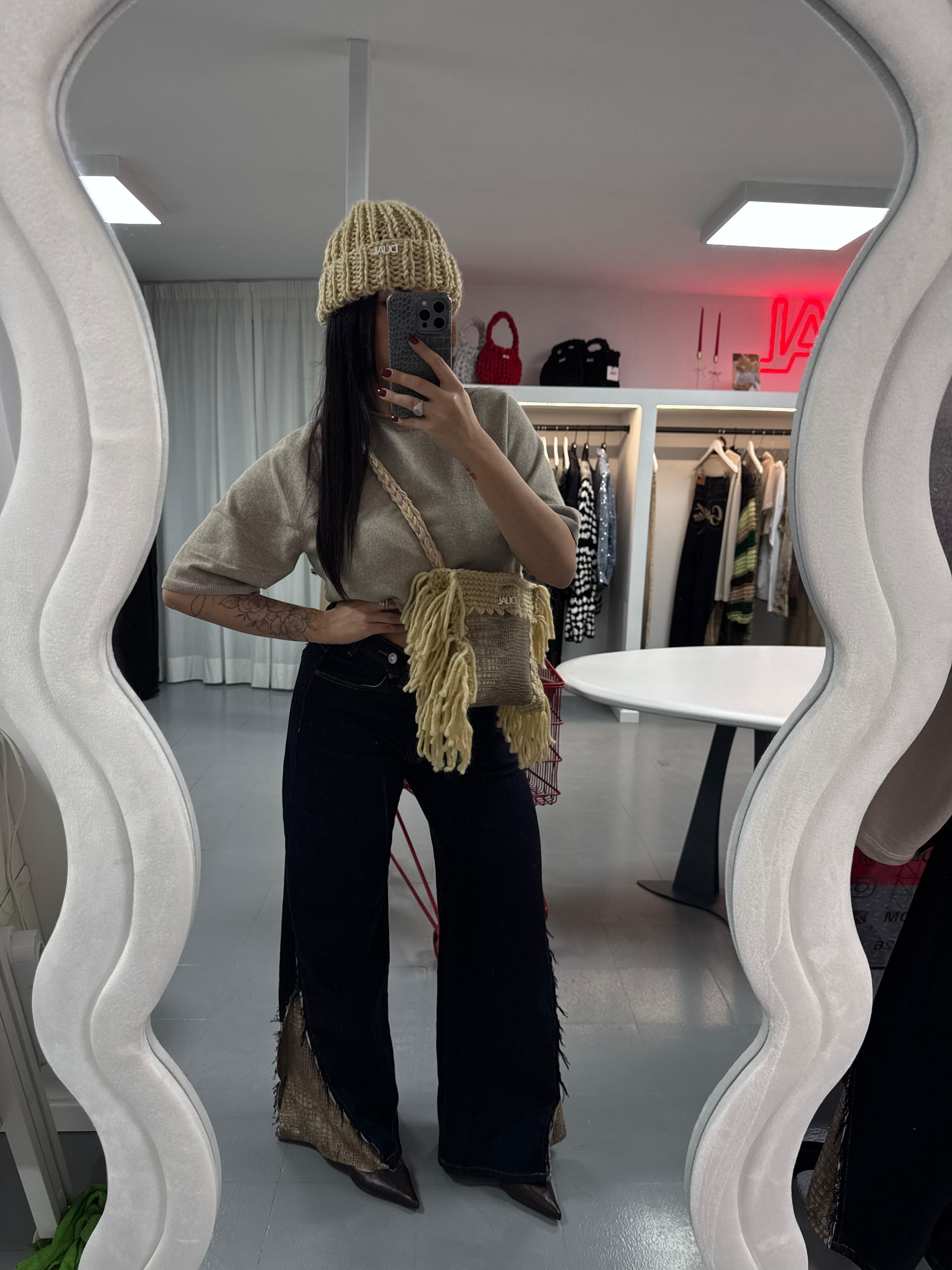 Design con frange, perfetta per look originali e super cool.