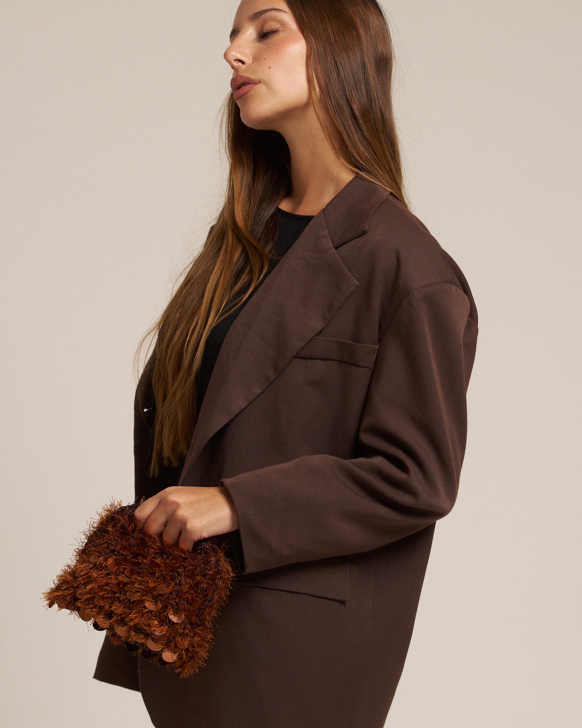 Borsa all’uncinetto con filato laminato lurex e filato fur con paillettes. Elegante e versatile, ideale sia di sera che per look più casual.