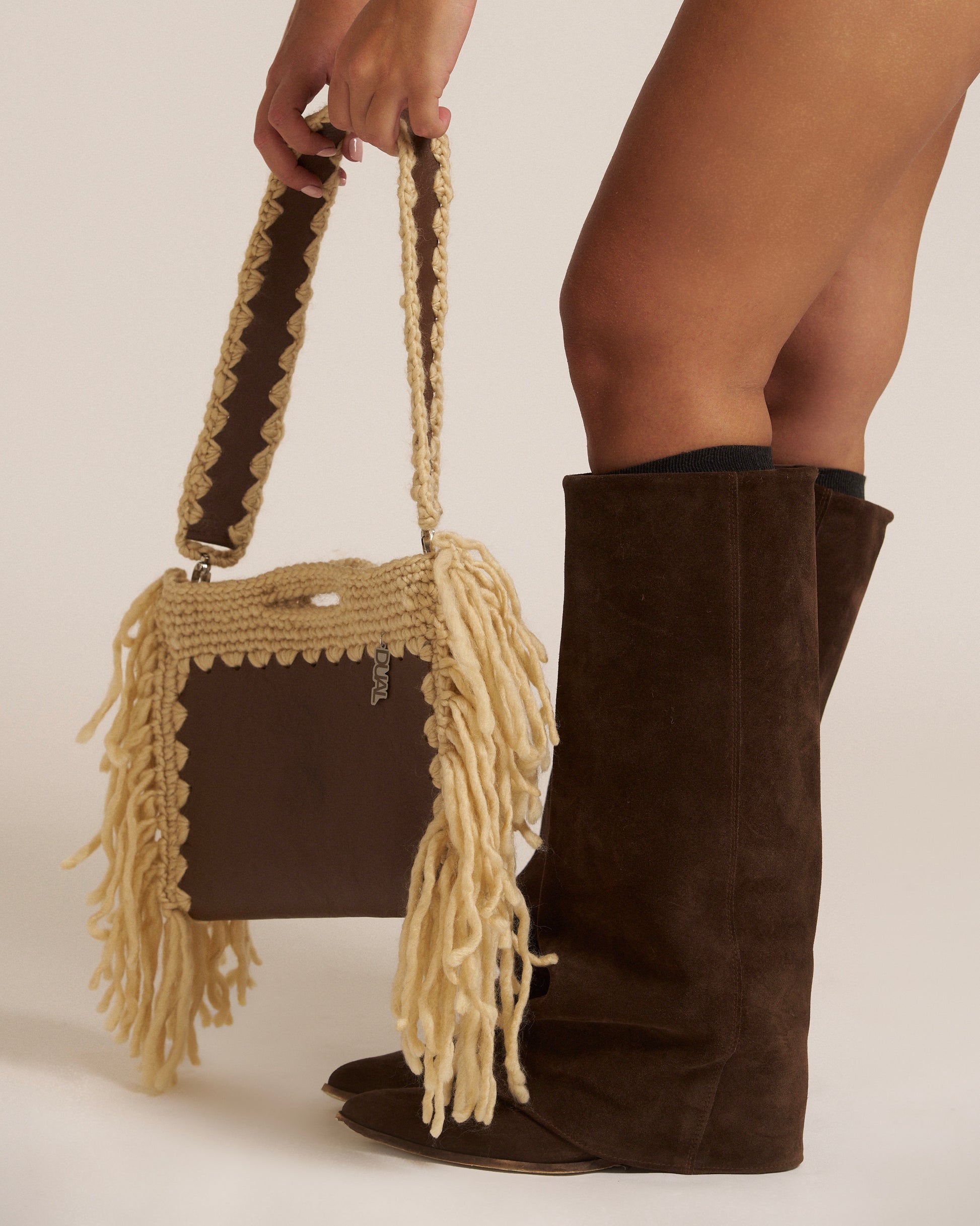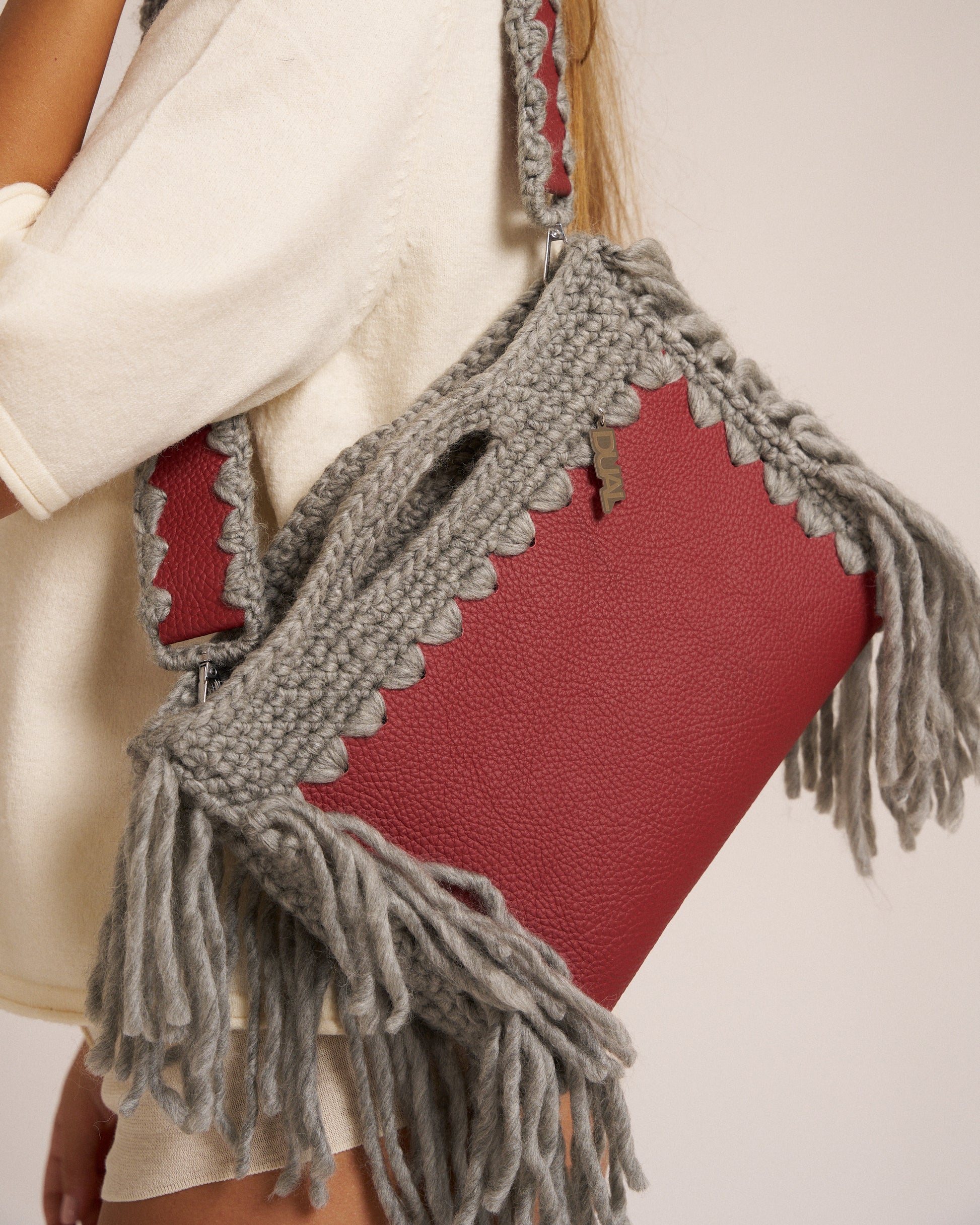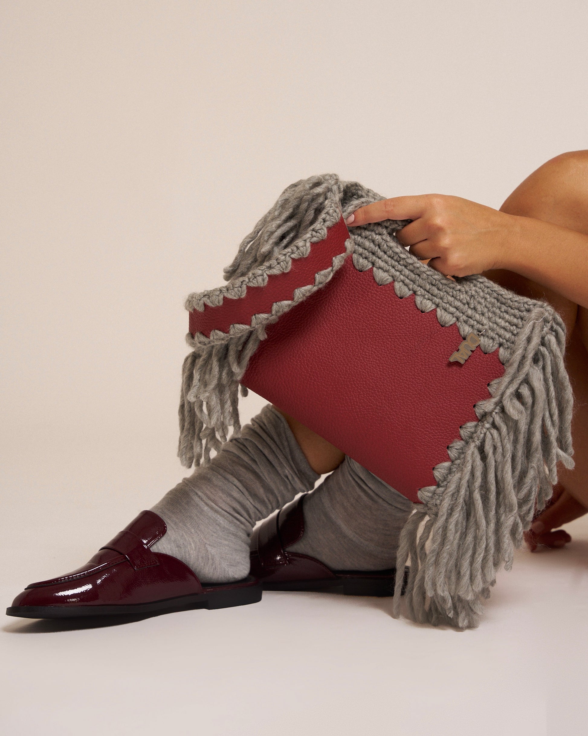 Borsa realizzata in vera pelle e lana Merino 100% vegetale, perfetta per la stagione invernale.