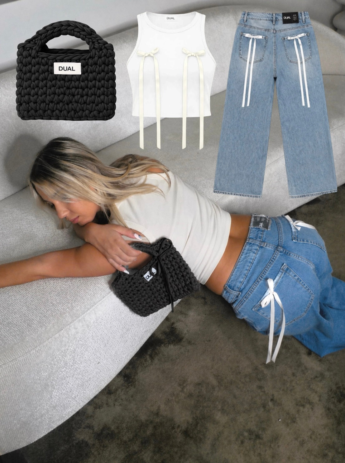 PANTALONI JEANS CON FIOCCHI BIANCHI